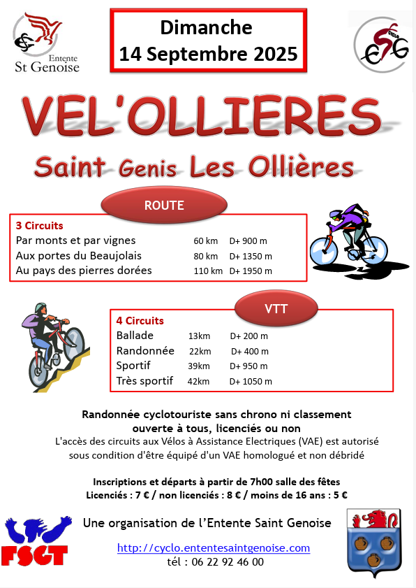 Le dimanche 14 sept. 2025 à 07h Lieu : salle des fêtes saint genis les ollières