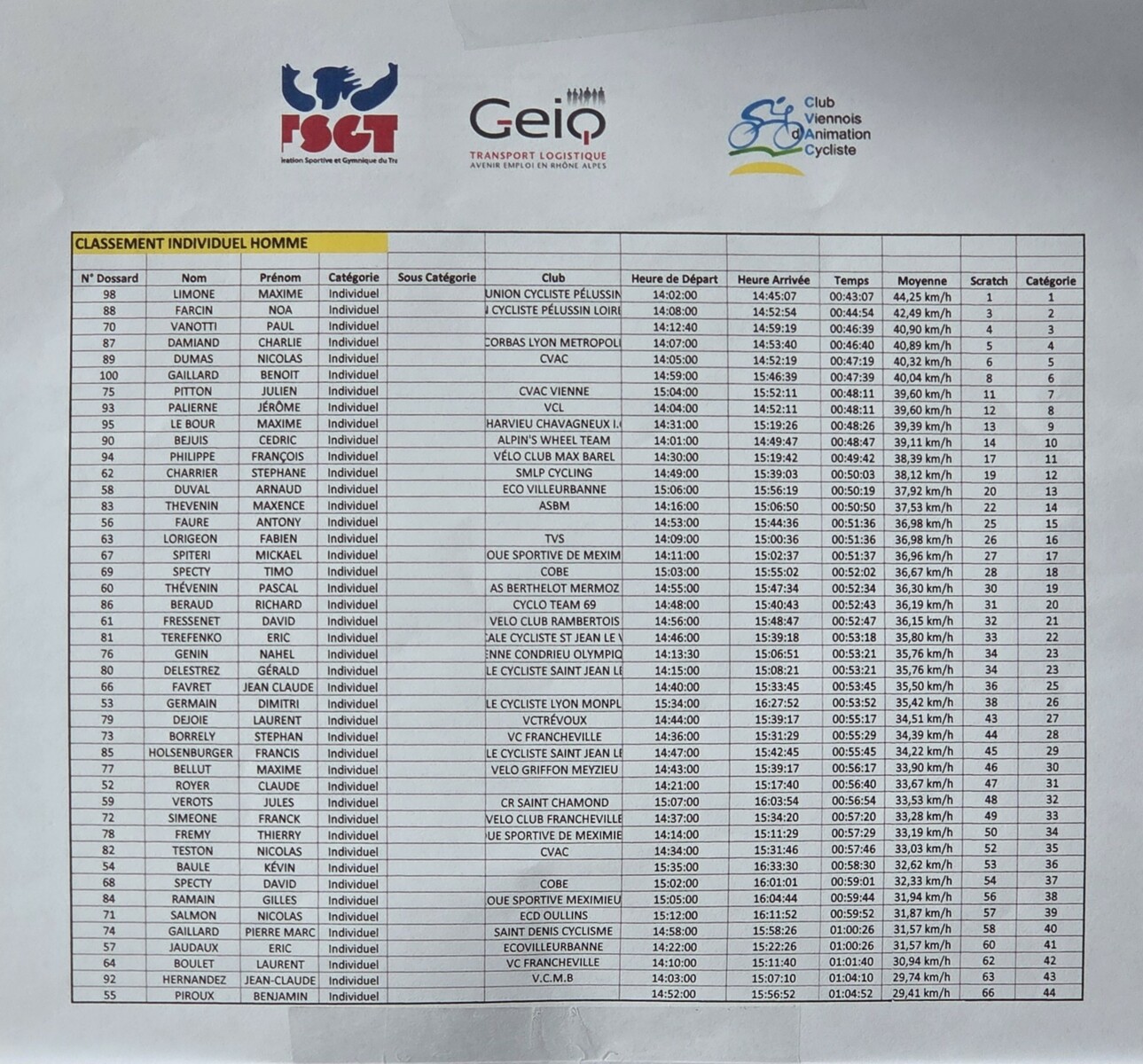 François et Jean-Claude ont réalisé le difficile circuit de Cour et Buis. François se classe 11ème du scratch individuel homme, J-C 43ème. Epreuve comptant pour le classement de la coupe des CLM FSGT 2025 ou nos coureurs occupent de belles places.