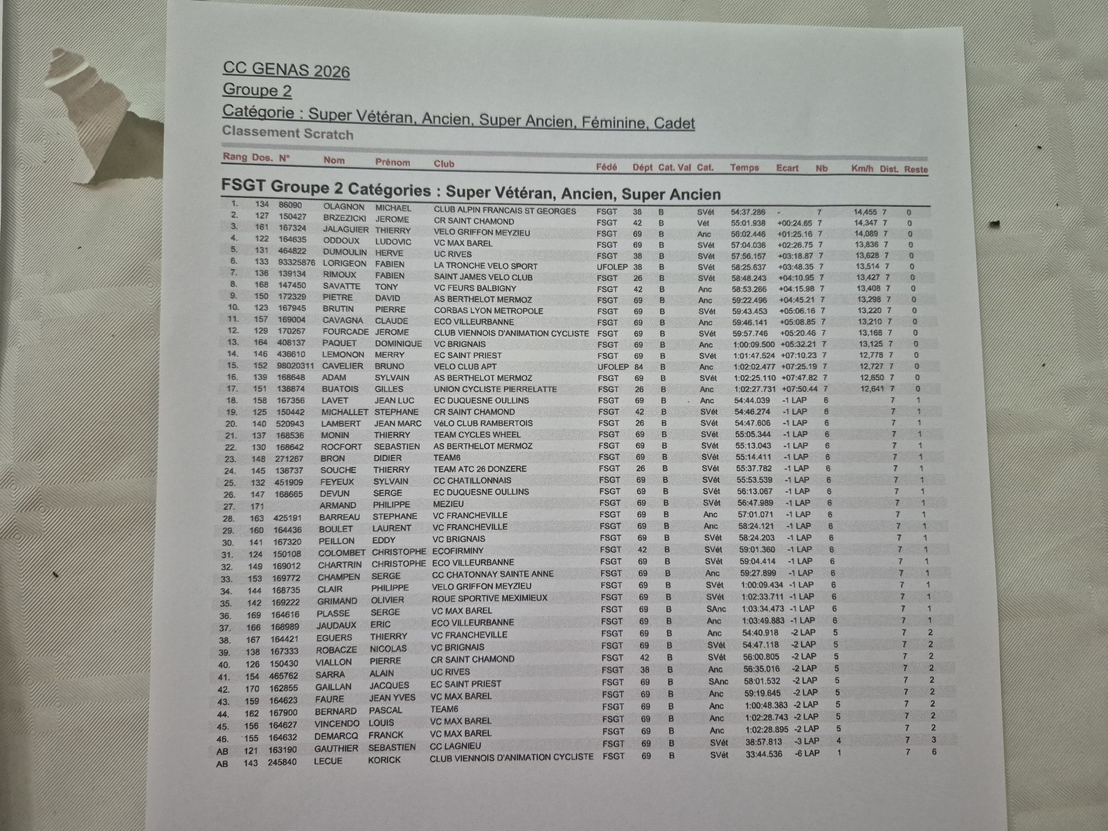 Cyclo-cross de reprise saison 25/26 organisé de belle manière au fort de Genas par l'ASBM. Météo agréable pour la course de notre groupe, avec la reprise de Ludovic Oddoux, Franck Demarcq, Serge Plasse, Louis Vincendon et moi-même. Ludo est 4ème du scratch 3ème des super vétérans, Serge premier des super anciens. Un excellent début de saison !