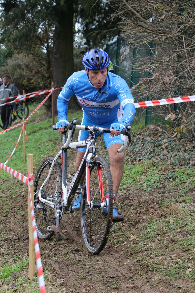 Serge Plasse en reprise prudente sur ce CX tracé dans le camping des oiseaux de Villars Les Dombes. Des virages serrés, des banderoles dans tous les sens pour évoluer autour des tentes du camping. Une météo agréable et un circuit mouillé et boueux par endroit. A l'arrivée Serge assure le podium et prend des points précieux pour le challenge des cyclocross, je termine avec deux chutes sans gravité.