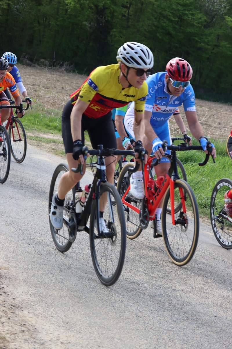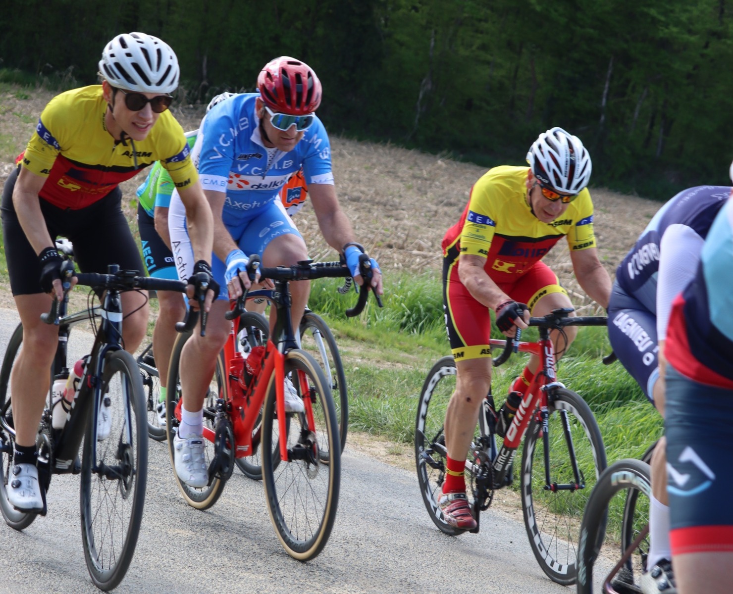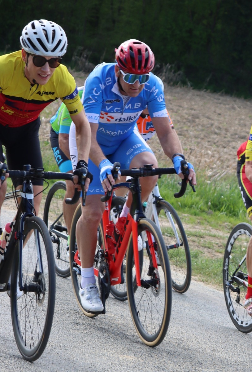 7 coureurs VC MAX BAREL engagés sur ce championnat ou Pascal Petit et Serge se classent 29ème et 19ème de leur catégorie respective. Louis en reprise est 34ème. Notre team de 5ème catégorie démarre en trombe par l'action de Thierry qui réussi à séparer le peloton en trois groupes, Jean-Paul y va de bon cœur et JC serre les manettes à l'arrière. Thierry sprint pour la place de 4, J-Paul est 9ème bravo, JC 25ème et David en 28ème position/29 classés et 1 abandon. Bonne organisation, un circuit rendu technique par la présence du vent.
