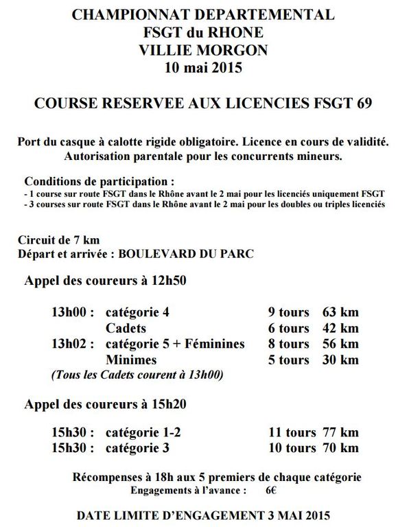 Réglement FGST Cyclisme