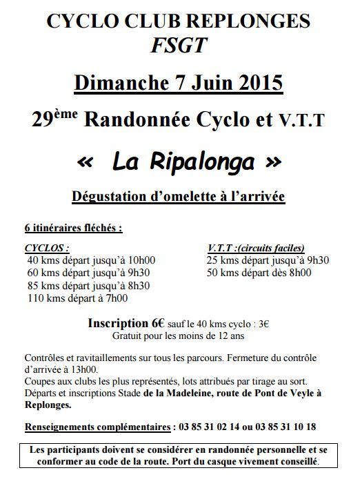 Le dimanche 07 juin 2015 à 07h30 Lieu : Stade de la Madeleine, route de Pont de Veyle à Replonges.