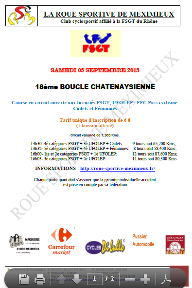 Le samedi 05 sept. 2015 de 13h30 à 17h15 Lieu : CHATENAY
