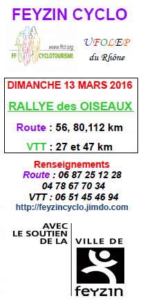 Pour le détail des 3 parcours, voir le site: http://feyzincyclo.jimdo.com/rallye-des-oiseaux-2016/