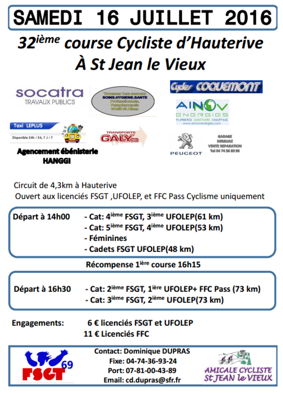 32ième course Cycliste d’Hauterive À St Jean le Vieux