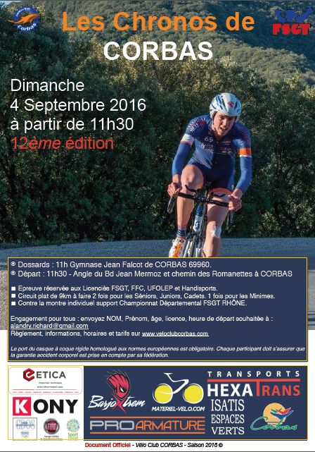 Inscription via le club, pour page: http://www.vcmb-venissieux.com/saison-2016/actualites-du-club/chrono-de-corbas-526986
