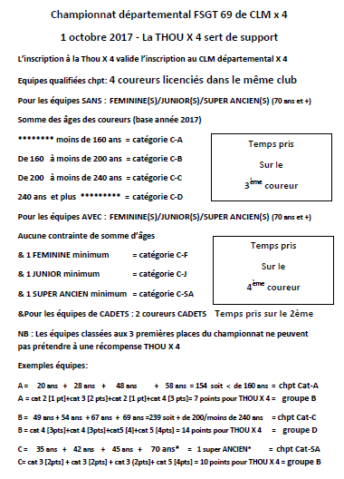 Championnat départemental des clubs FSGT 69 - CLMx4
