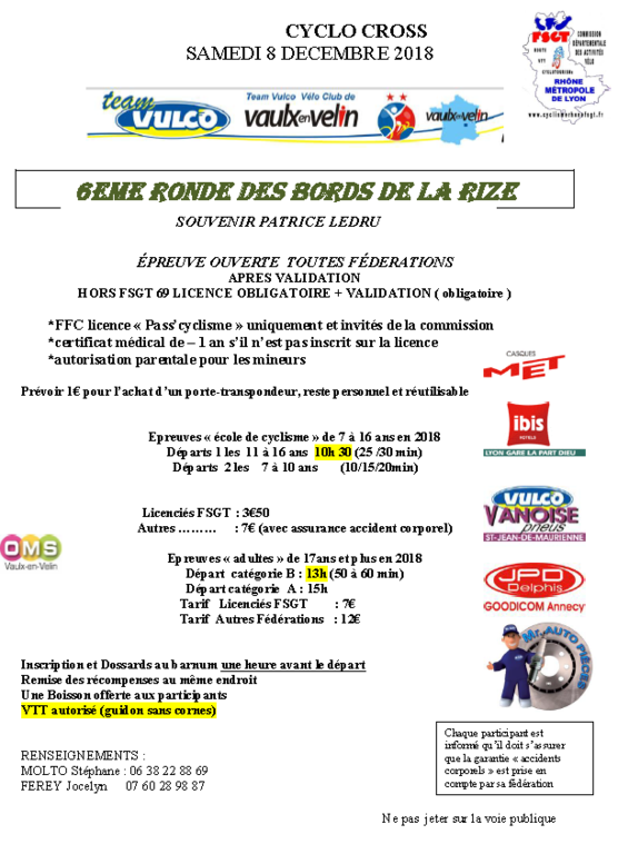 Le samedi 08 déc. 2018 à 10h30 Lieu : avenue grand clément vaulx en velin
