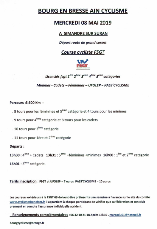 Le mercredi 08 mai 2019 à 13h30 Lieu : simandre sur suran