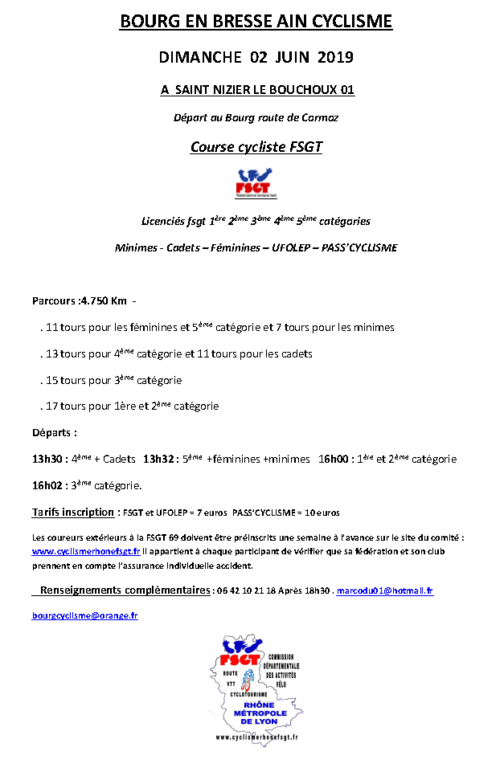 Le dimanche 02 juin 2019 à 13h30 Lieu : St Nizier le Bouchoux