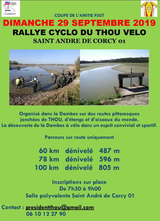 Le dimanche 29 sept. 2019 à 07h30 Lieu : saint andré de corcy