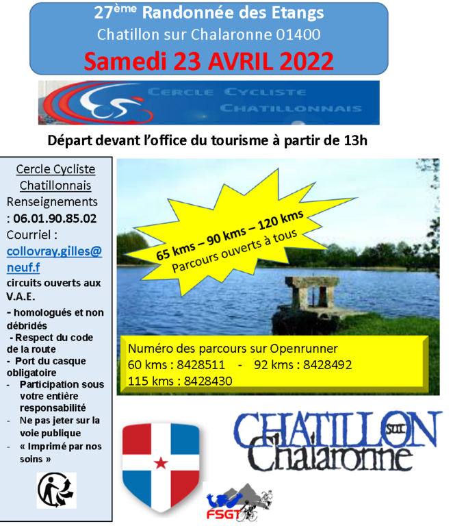 de la 27ème Randonnée des Étangs, organisée par le CC CHATILLONNAIS (01)