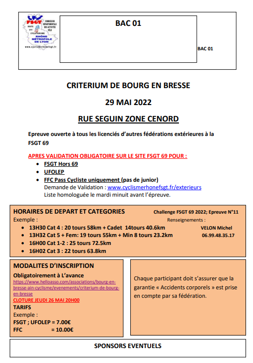 Louis Vincendon 13ème en FSGT 4ème Cat