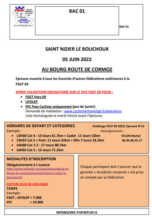 Jean Yves Faure 21ème en FSGT 5ème Cat
