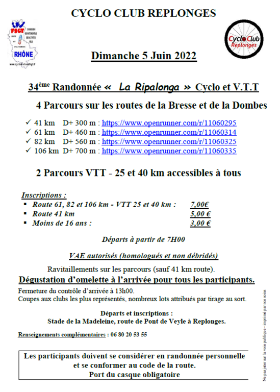 Le dimanche 05 juin 2022 à 07h Lieu : route de Pont de Veyle replonge