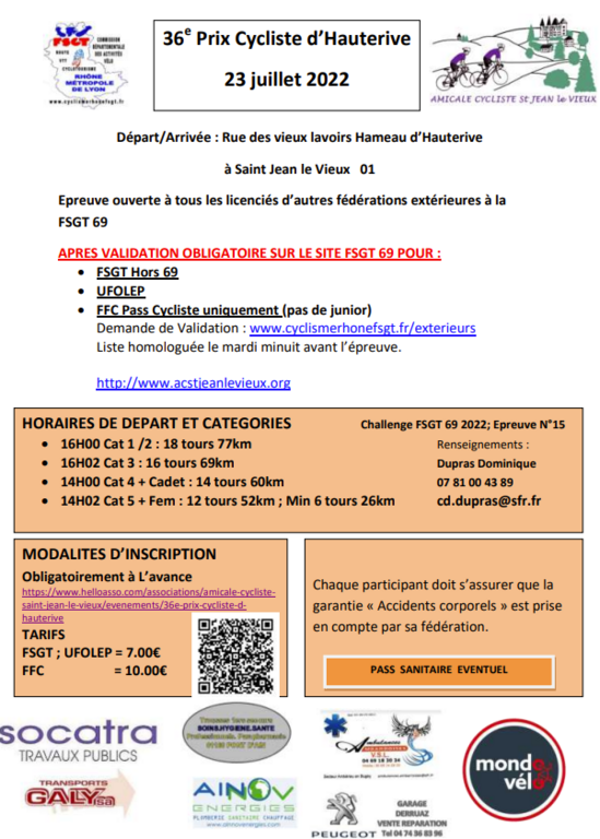 Jean Yves Faure 17ème en FSGT 5ème Cat