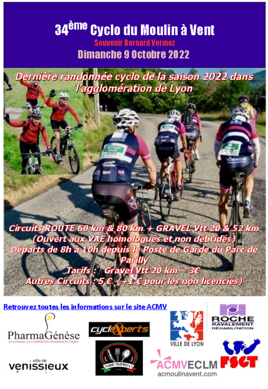 Pour plus d'informations: https://www.acmoulinavent.com/organisation_cyclo_venissiane.php