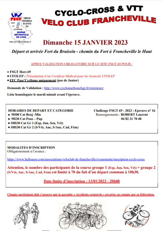 Le dimanche 15 janv. 2023 à 09h Lieu : Fort du Bruissin francheville