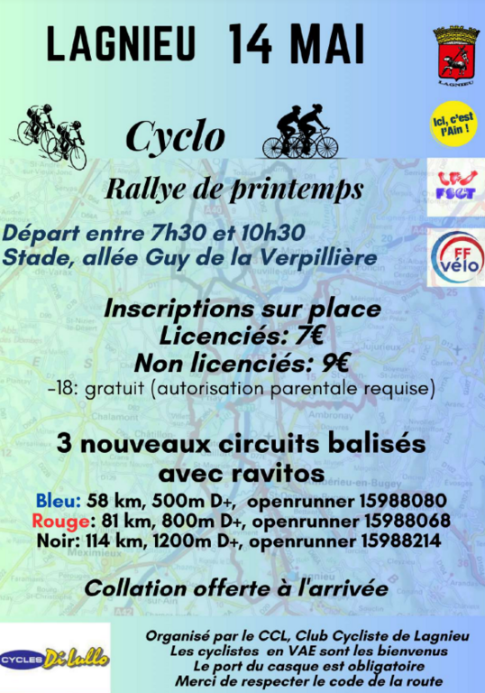 Le dimanche 14 mai 2023 à 07h30 Lieu : allée guy de la verpilliere lagnieu