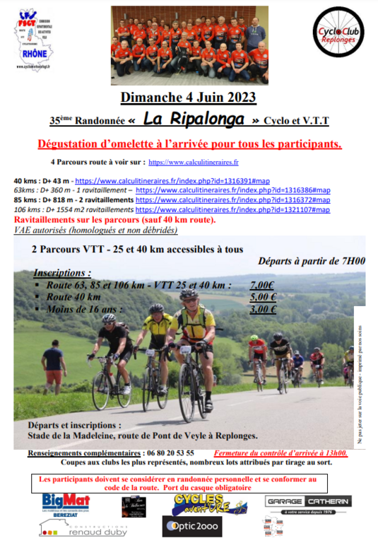 Le dimanche 04 juin 2023 à 07h Lieu : Stade de la Madeleine, route de Pont de Veyle replonges