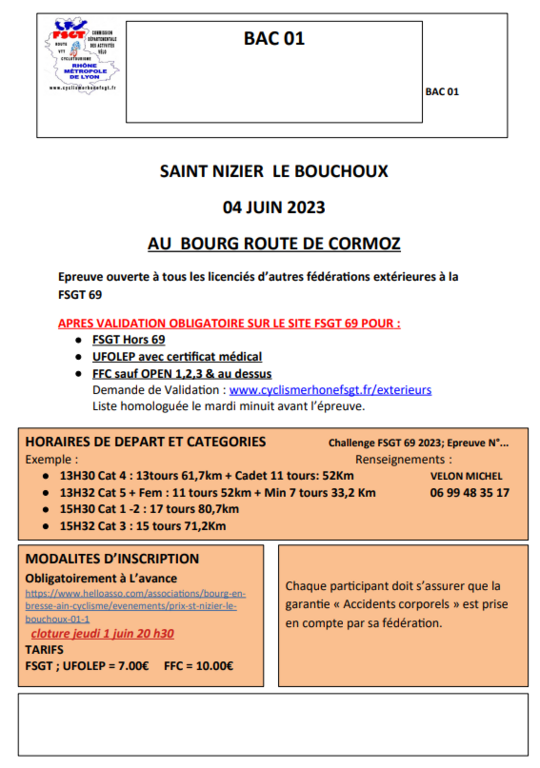 Le dimanche 04 juin 2023 à 13h30 Lieu : bourg route de cormoz saint nizier le bouchoux