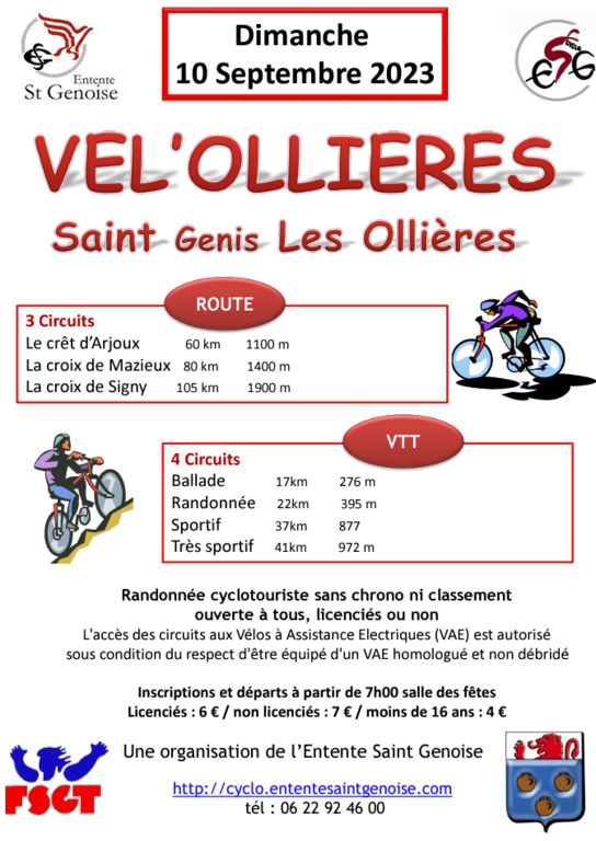 Le dimanche 10 sept. 2023 à 07h Lieu : salle des fêtes saint genis les ollières