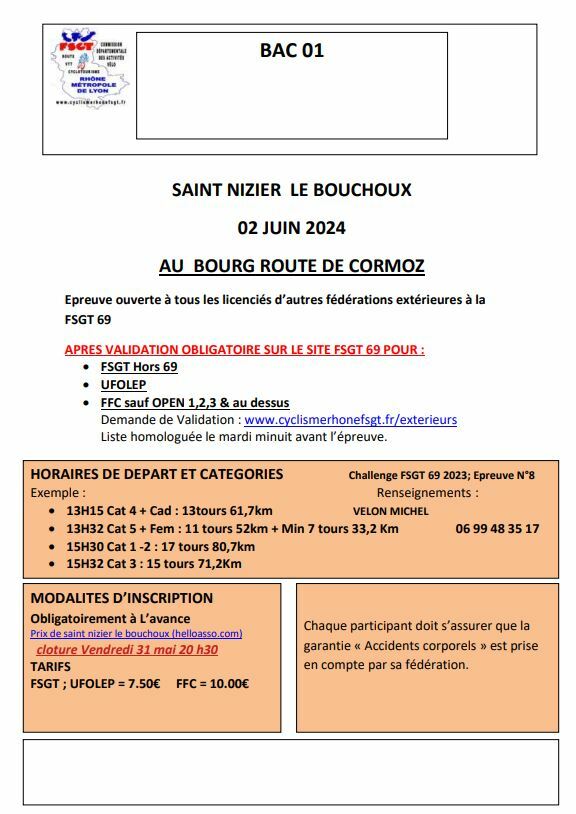 Jean Yves Faure 13ème en FSGT 5ème Cat