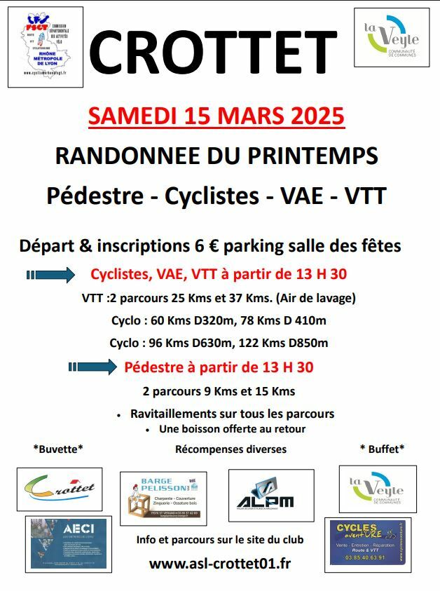 Randonnée de Printemps Cyclo, VTT, VAE, Pédestre
