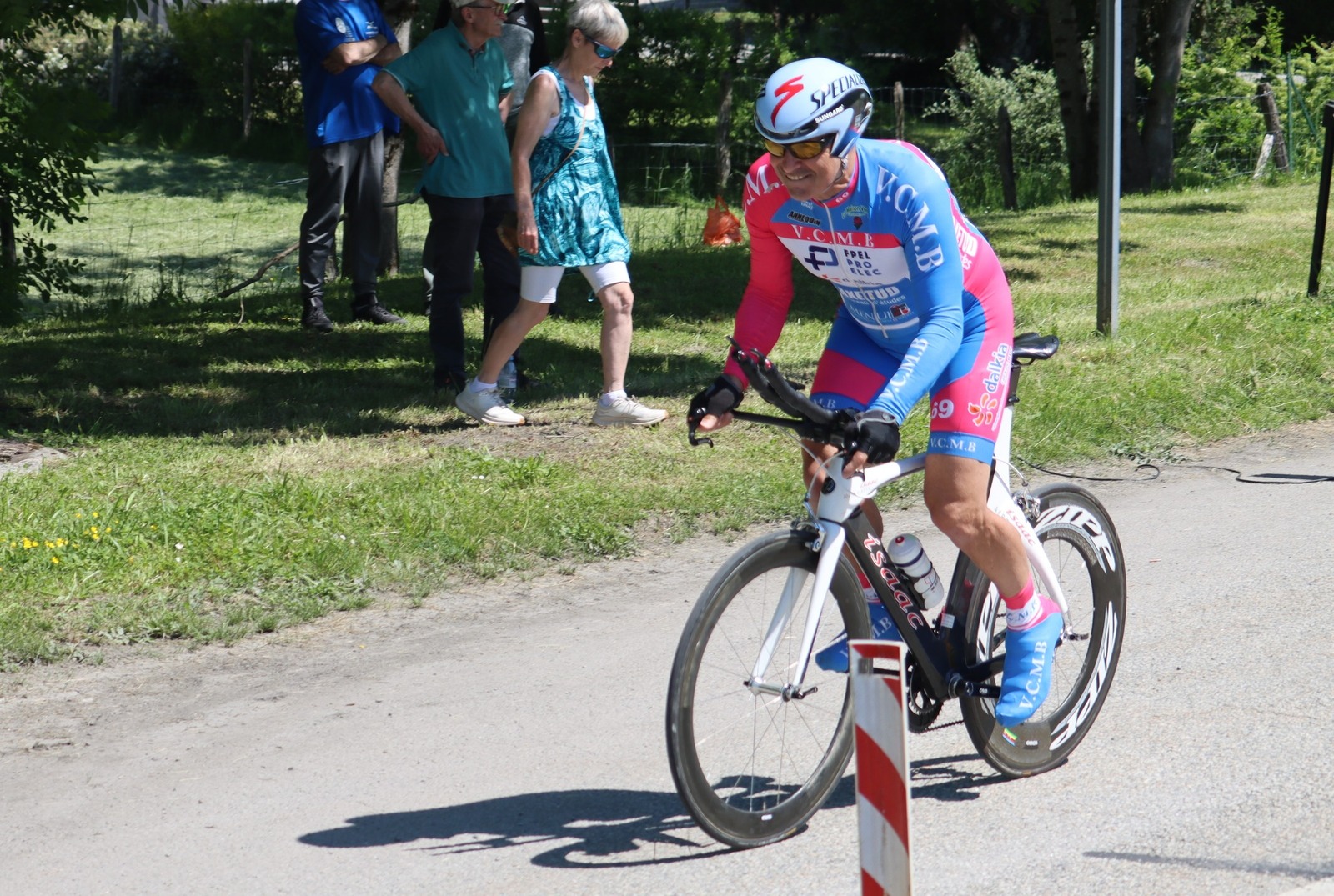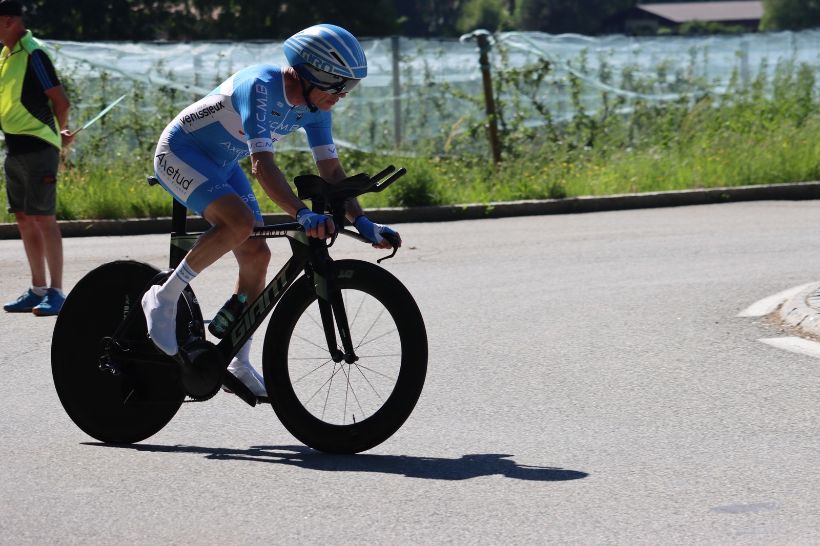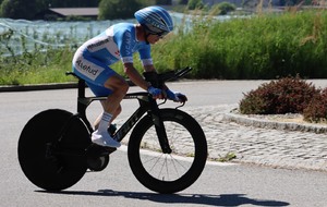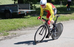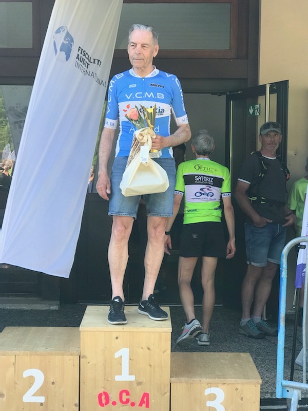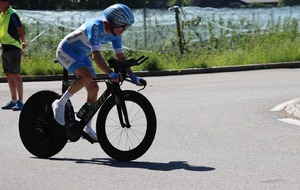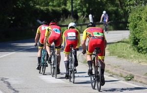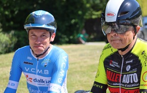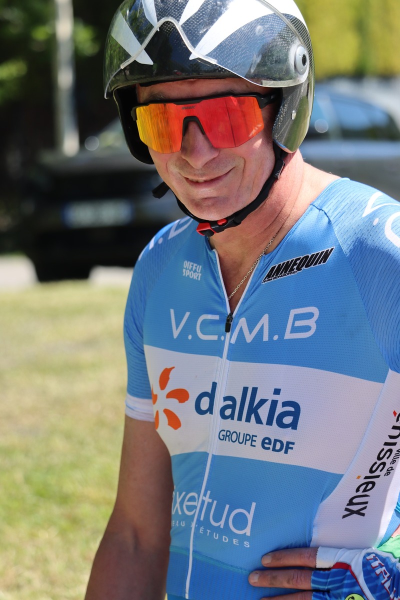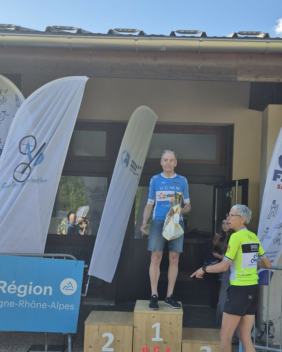 Quatre mousquetaires du VCMB présents sur l'épreuve individuelle et l'exercice en équipe du championnat FSGT 2025 AURA de CLM organisé en Savoie. La victoire au scratch de l'épreuve individuelle ayant été acquise à une vitesse supérieur à 47km/h. François Philippe se classe 30ème du scratch avec plus de 42km/h arrivent ensuite Jean Macro 85ème, Franck Demarcq 105ème et Jean-Claude Hernandez 11ème du scratch et champion AURA de sa catégorie. Félicitations Jean-Claude c'est un beau podium bien mérité qui traduit ta passion de la vitesse à vélo. C'était aussi l'ocasion de la reprise de Jean-Macron sous les couleurs du VCMB. Bravo à l'équipe d'avoir réalisé le chrono par 4 et obtenu la 17ème plasse des équipes. Le circuit Aiton-Grignon étant en ligne, sur l'ensemble de l'épreuve à partir de l'échauffement nos coureurs ont réalisé 80 kms sur les vélos de chrono. Une belle journée et une bonne organisation FSGT 73/74.