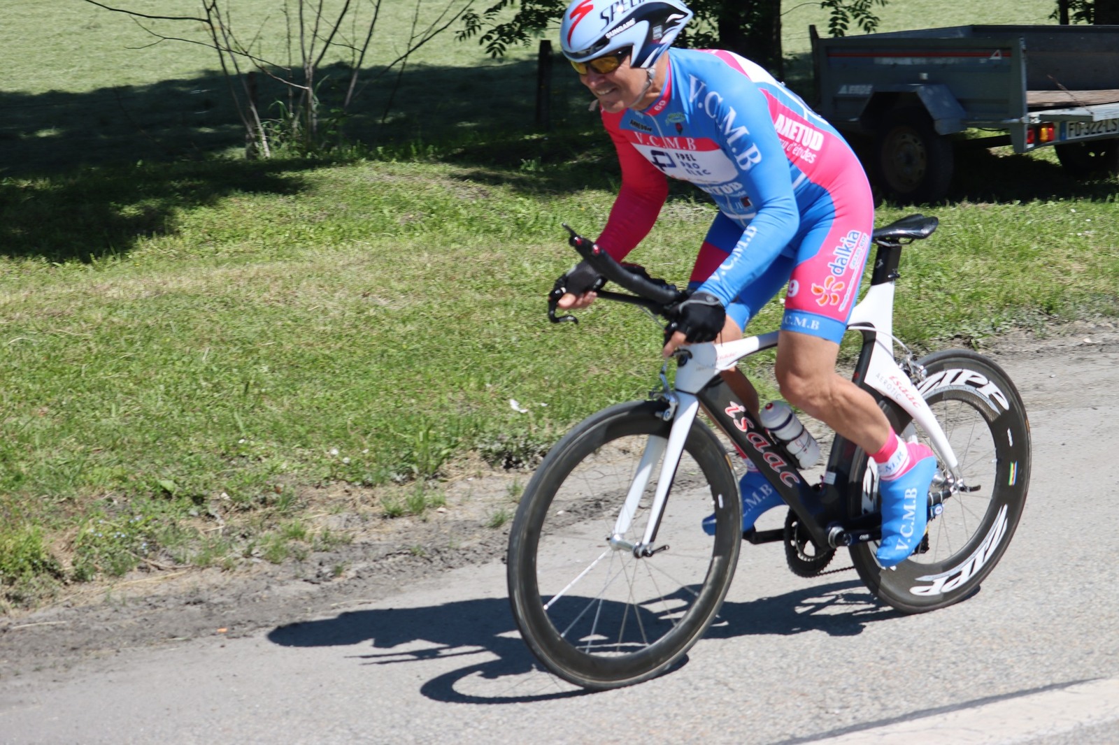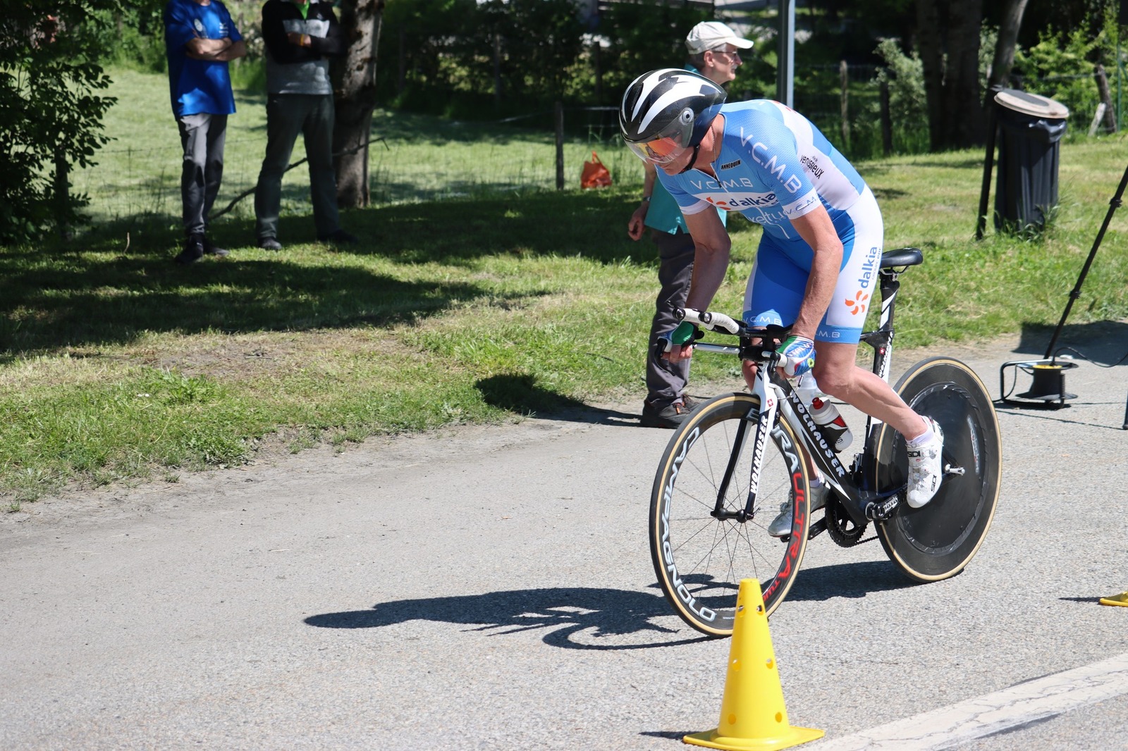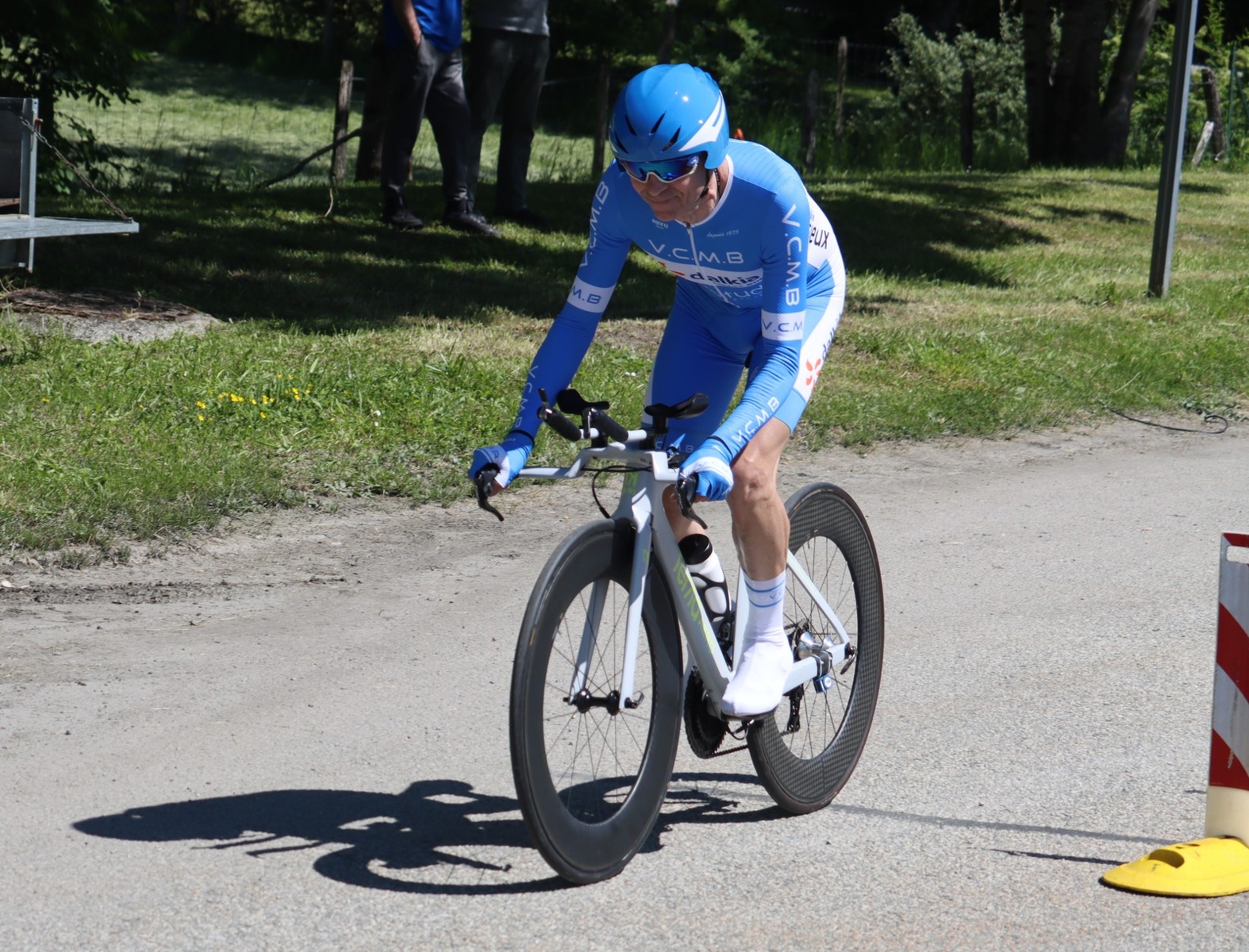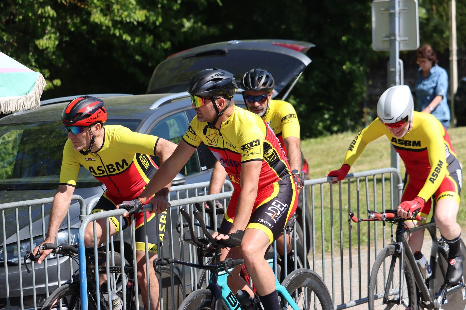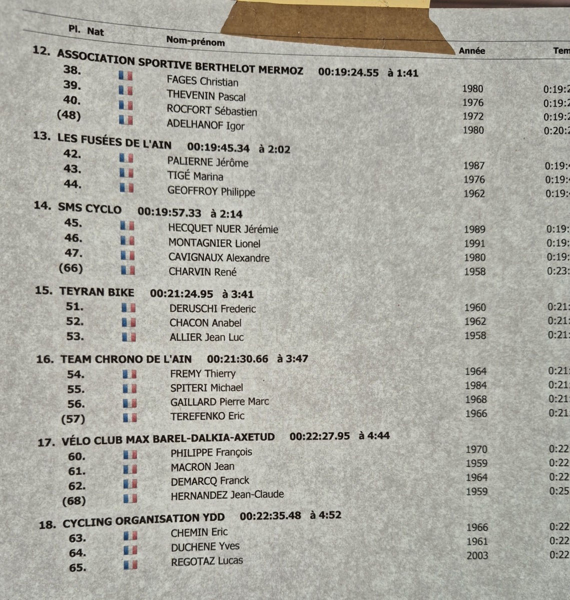 Quatre mousquetaires du VCMB présents sur l'épreuve individuelle et l'exercice en équipe du championnat FSGT 2025 AURA de CLM organisé en Savoie. La victoire au scratch de l'épreuve individuelle ayant été acquise à une vitesse supérieur à 47km/h. François Philippe se classe 30ème du scratch avec plus de 42km/h arrivent ensuite Jean Macro 85ème, Franck Demarcq 105ème et Jean-Claude Hernandez 11ème du scratch et champion AURA de sa catégorie. Félicitations Jean-Claude c'est un beau podium bien mérité qui traduit ta passion de la vitesse à vélo. C'était aussi l'ocasion de la reprise de Jean-Macron sous les couleurs du VCMB. Bravo à l'équipe d'avoir réalisé le chrono par 4 et obtenu la 17ème plasse des équipes. Le circuit Aiton-Grignon étant en ligne, sur l'ensemble de l'épreuve à partir de l'échauffement nos coureurs ont réalisé 80 kms sur les vélos de chrono. Une belle journée et une bonne organisation FSGT 73/74.