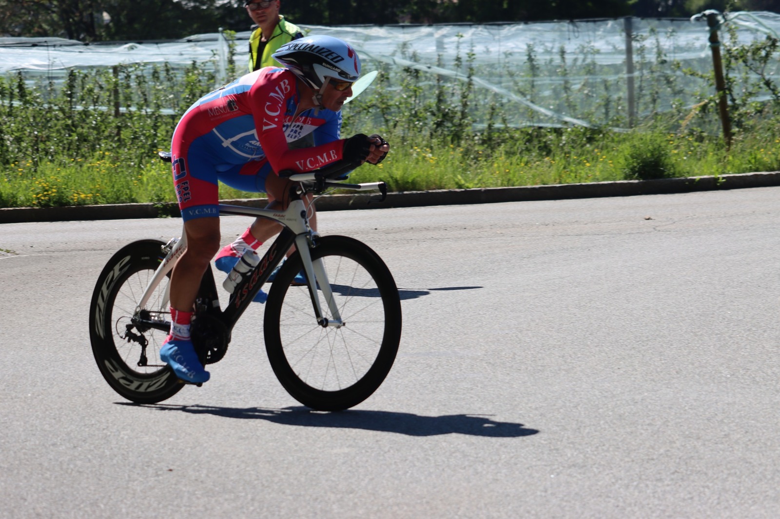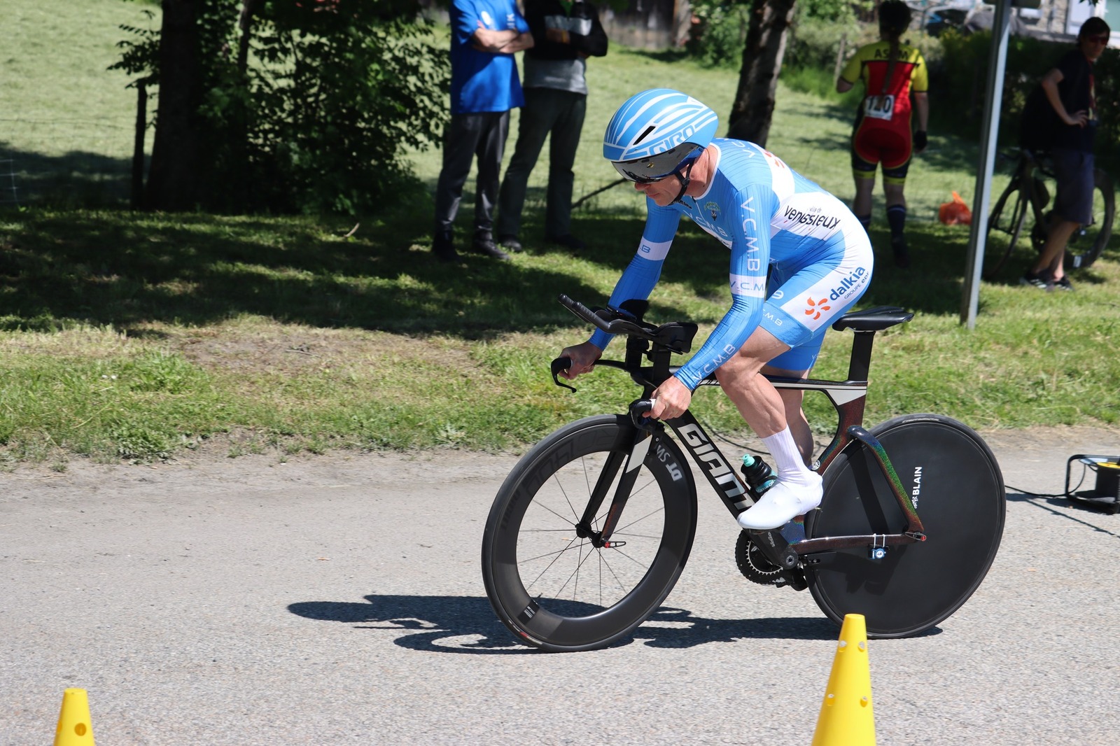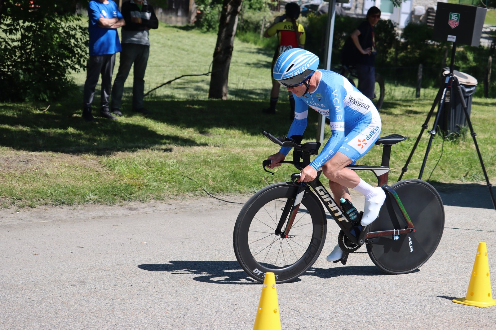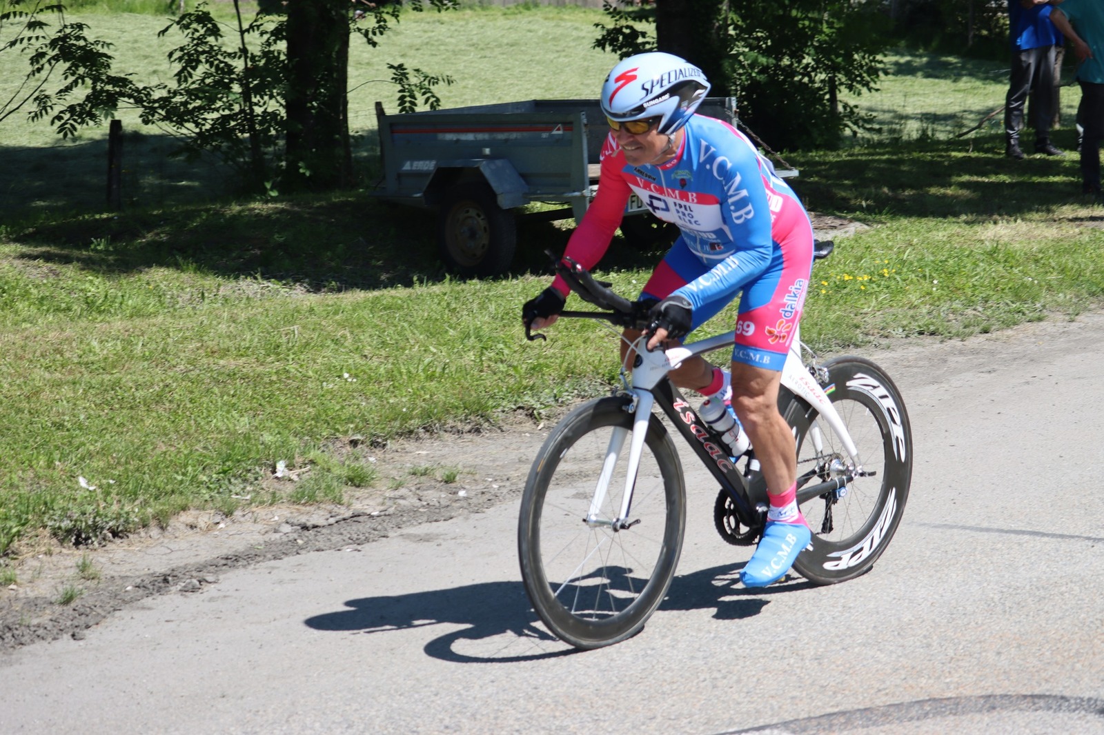 Quatre mousquetaires du VCMB présents sur l'épreuve individuelle et l'exercice en équipe du championnat FSGT 2025 AURA de CLM organisé en Savoie. La victoire au scratch de l'épreuve individuelle ayant été acquise à une vitesse supérieur à 47km/h. François Philippe se classe 30ème du scratch avec plus de 42km/h arrivent ensuite Jean Macro 85ème, Franck Demarcq 105ème et Jean-Claude Hernandez 11ème du scratch et champion AURA de sa catégorie. Félicitations Jean-Claude c'est un beau podium bien mérité qui traduit ta passion de la vitesse à vélo. C'était aussi l'ocasion de la reprise de Jean-Macron sous les couleurs du VCMB. Bravo à l'équipe d'avoir réalisé le chrono par 4 et obtenu la 17ème plasse des équipes. Le circuit Aiton-Grignon étant en ligne, sur l'ensemble de l'épreuve à partir de l'échauffement nos coureurs ont réalisé 80 kms sur les vélos de chrono. Une belle journée et une bonne organisation FSGT 73/74.