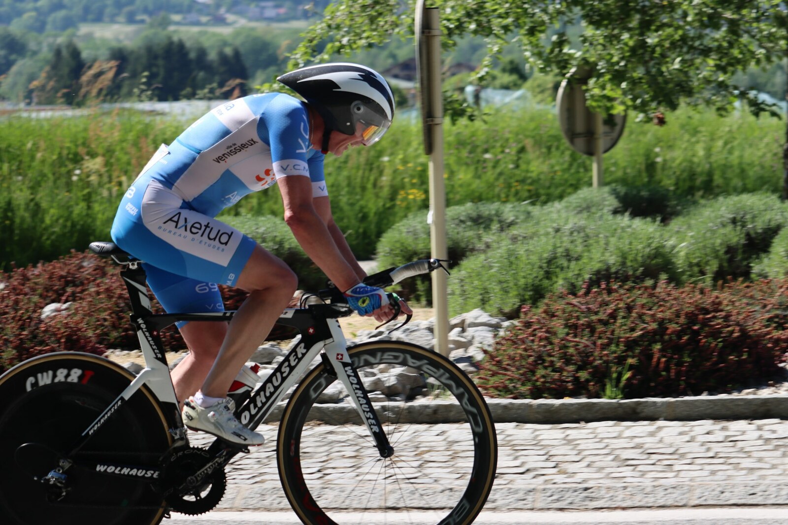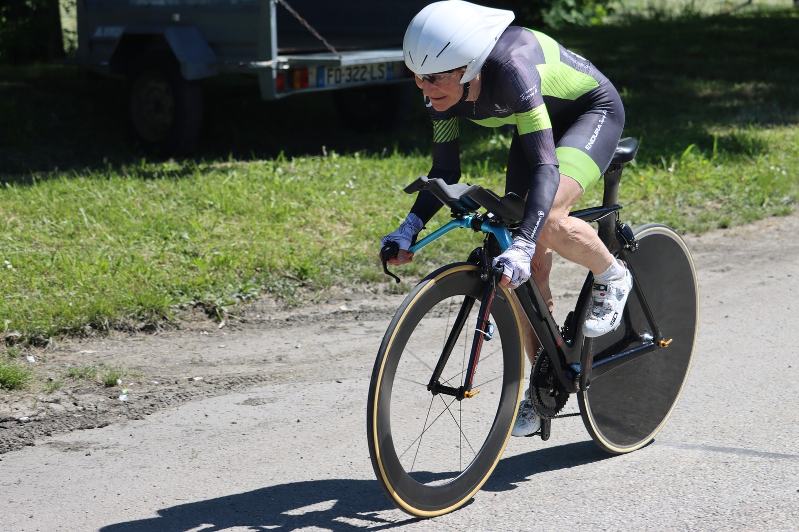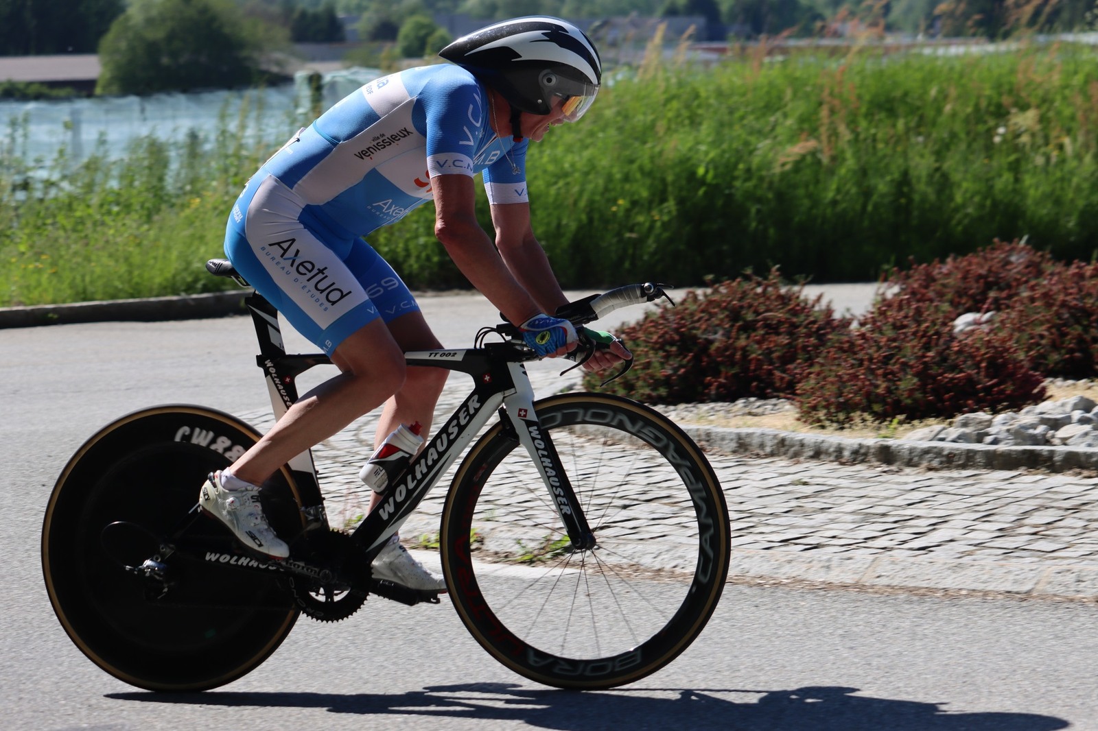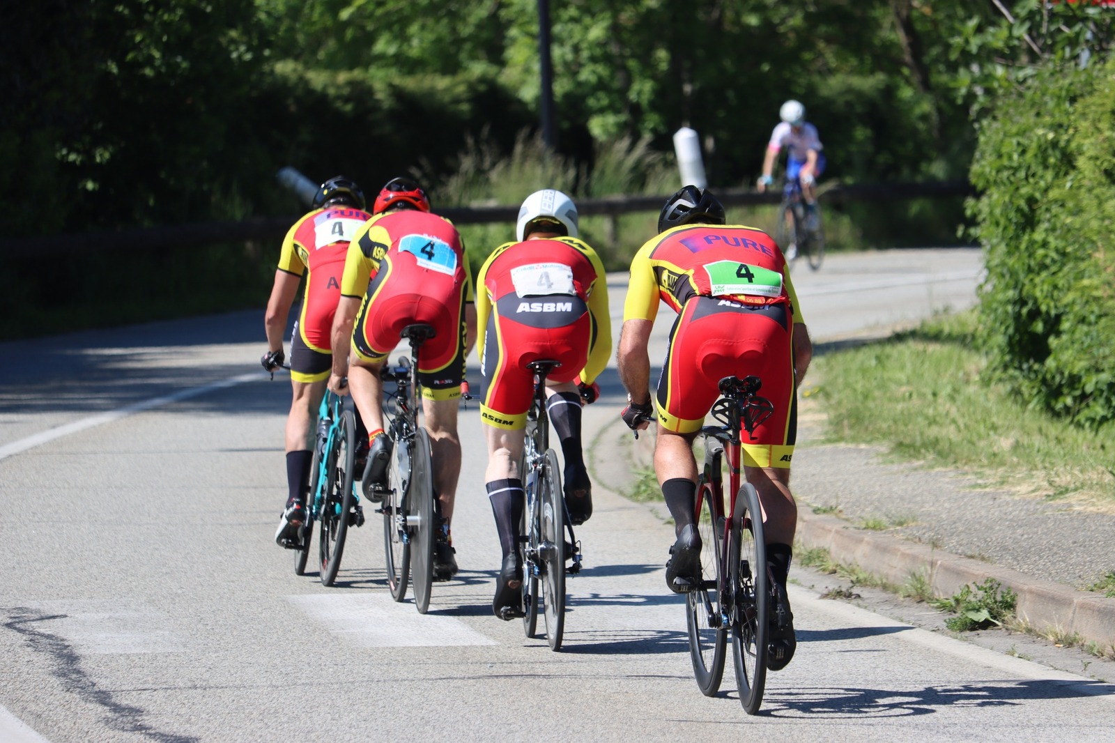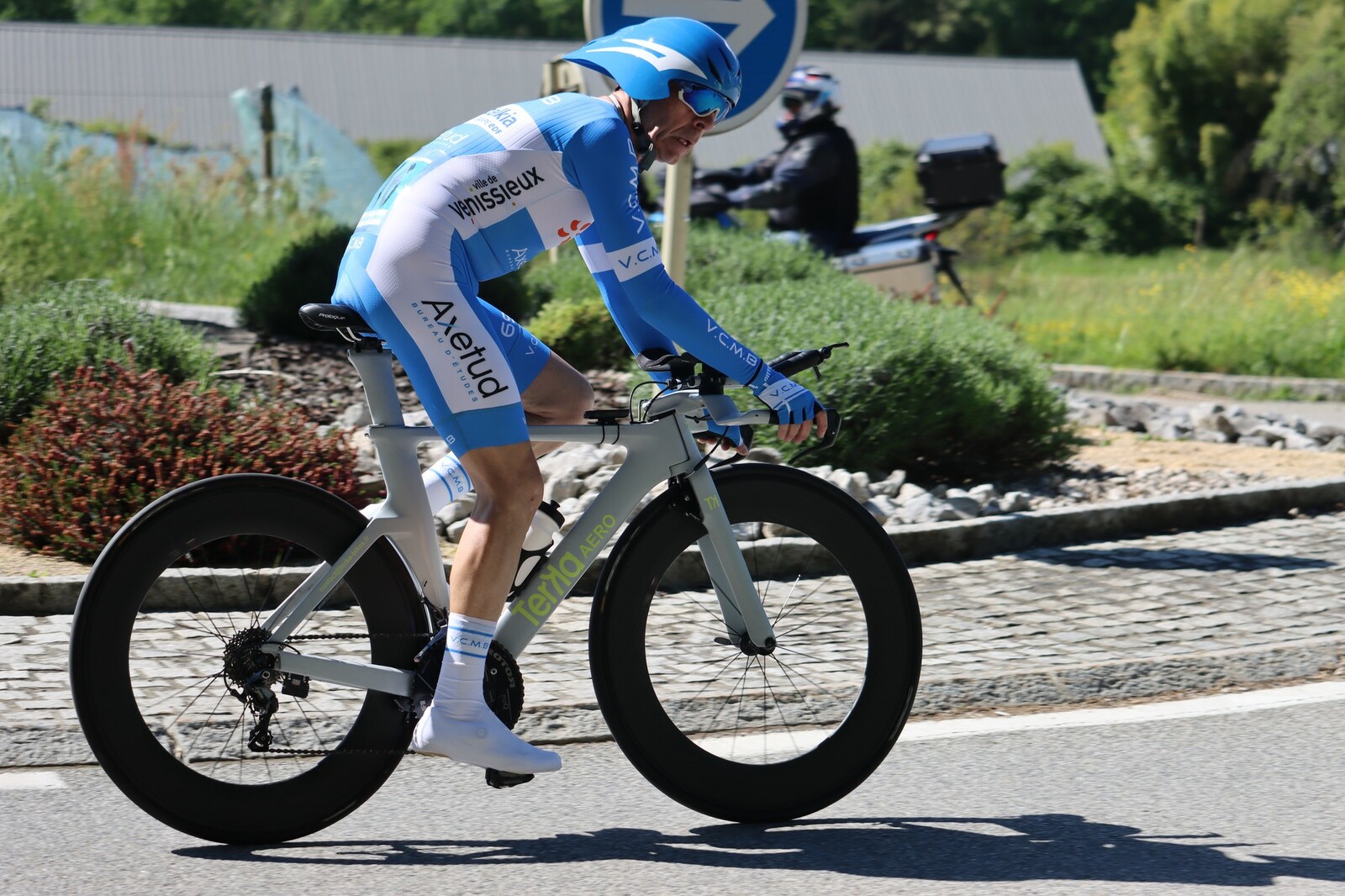 Quatre mousquetaires du VCMB présents sur l'épreuve individuelle et l'exercice en équipe du championnat FSGT 2025 AURA de CLM organisé en Savoie. La victoire au scratch de l'épreuve individuelle ayant été acquise à une vitesse supérieur à 47km/h. François Philippe se classe 30ème du scratch avec plus de 42km/h arrivent ensuite Jean Macro 85ème, Franck Demarcq 105ème et Jean-Claude Hernandez 11ème du scratch et champion AURA de sa catégorie. Félicitations Jean-Claude c'est un beau podium bien mérité qui traduit ta passion de la vitesse à vélo. C'était aussi l'ocasion de la reprise de Jean-Macron sous les couleurs du VCMB. Bravo à l'équipe d'avoir réalisé le chrono par 4 et obtenu la 17ème plasse des équipes. Le circuit Aiton-Grignon étant en ligne, sur l'ensemble de l'épreuve à partir de l'échauffement nos coureurs ont réalisé 80 kms sur les vélos de chrono. Une belle journée et une bonne organisation FSGT 73/74.