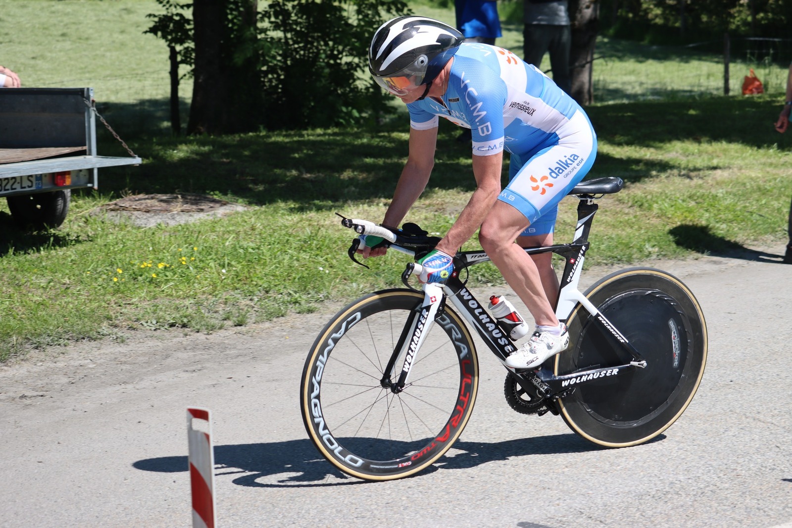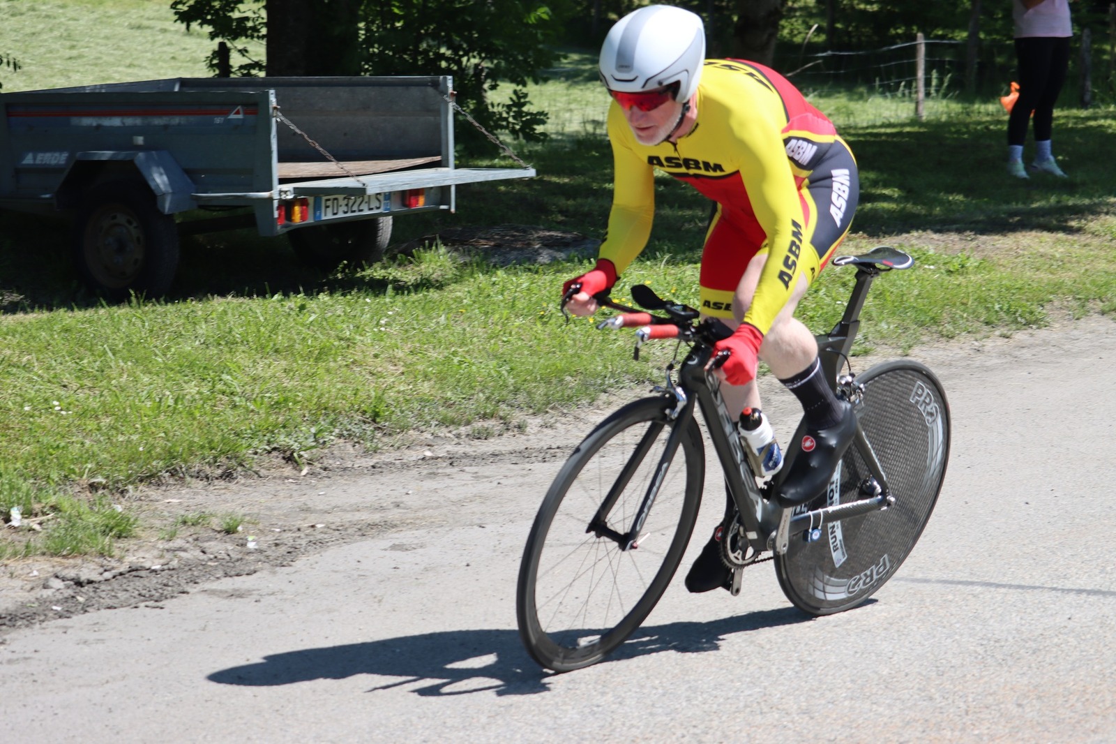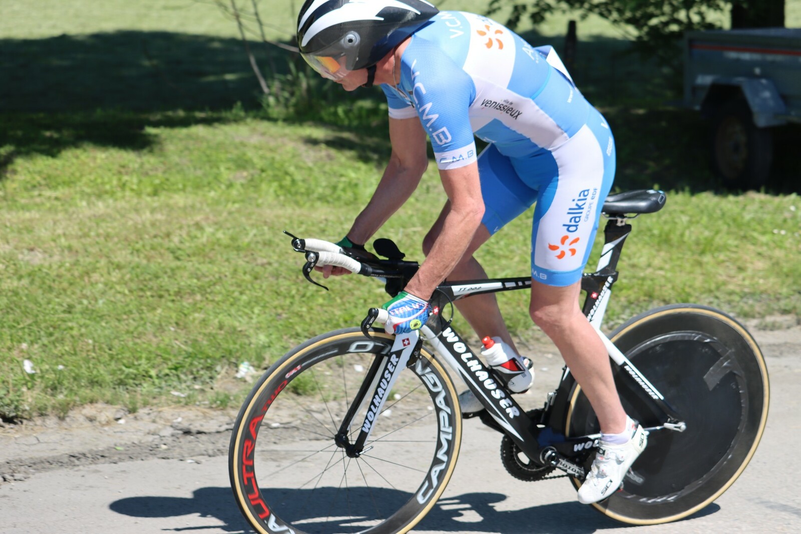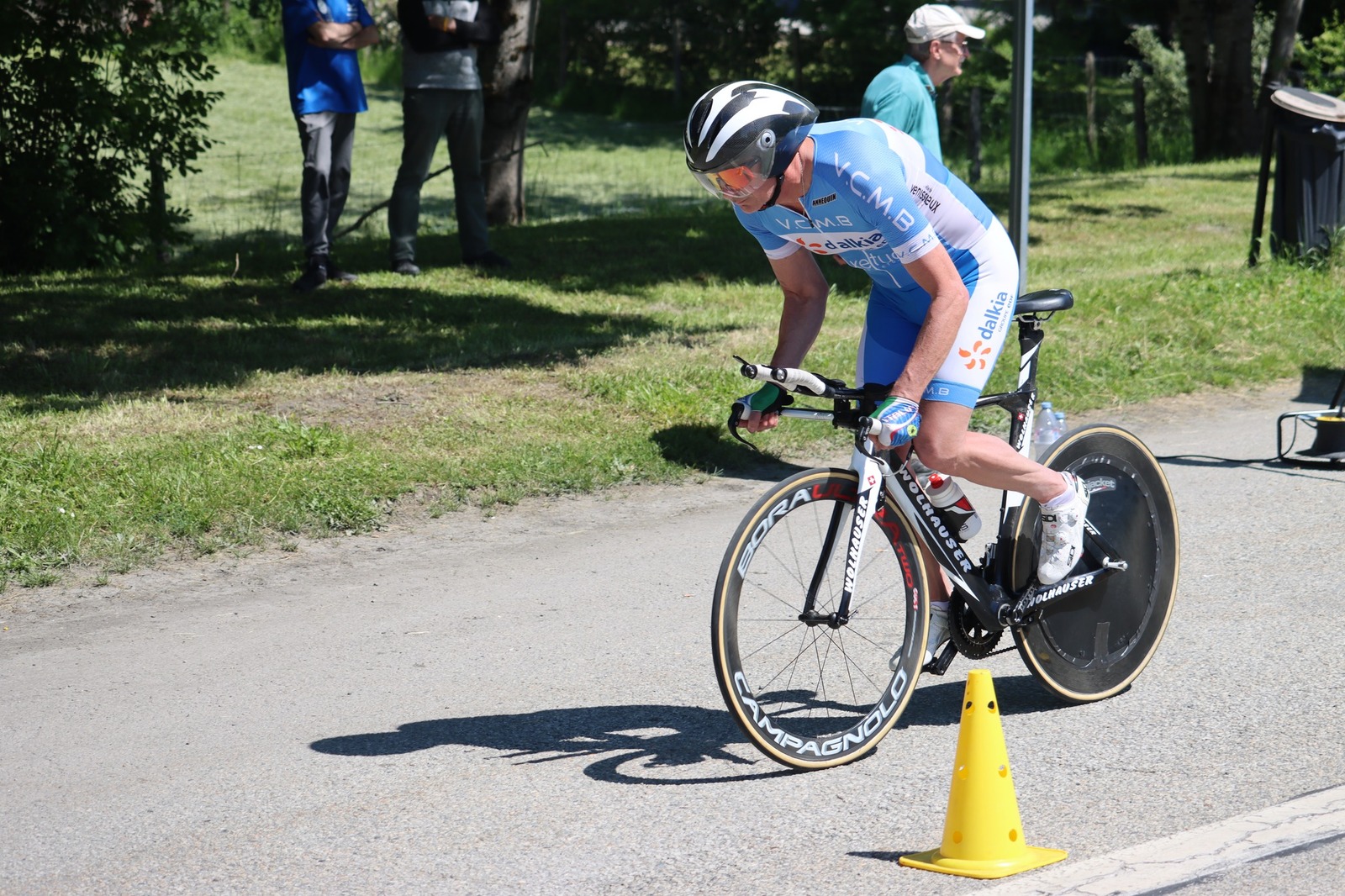Quatre mousquetaires du VCMB présents sur l'épreuve individuelle et l'exercice en équipe du championnat FSGT 2025 AURA de CLM organisé en Savoie. La victoire au scratch de l'épreuve individuelle ayant été acquise à une vitesse supérieur à 47km/h. François Philippe se classe 30ème du scratch avec plus de 42km/h arrivent ensuite Jean Macro 85ème, Franck Demarcq 105ème et Jean-Claude Hernandez 11ème du scratch et champion AURA de sa catégorie. Félicitations Jean-Claude c'est un beau podium bien mérité qui traduit ta passion de la vitesse à vélo. C'était aussi l'ocasion de la reprise de Jean-Macron sous les couleurs du VCMB. Bravo à l'équipe d'avoir réalisé le chrono par 4 et obtenu la 17ème plasse des équipes. Le circuit Aiton-Grignon étant en ligne, sur l'ensemble de l'épreuve à partir de l'échauffement nos coureurs ont réalisé 80 kms sur les vélos de chrono. Une belle journée et une bonne organisation FSGT 73/74.