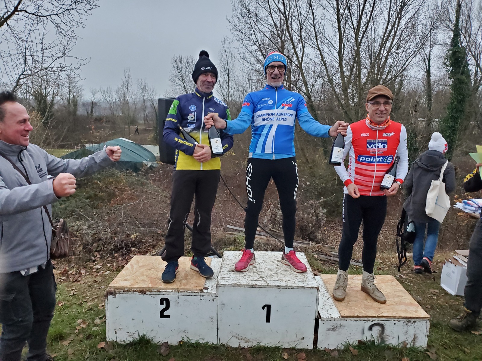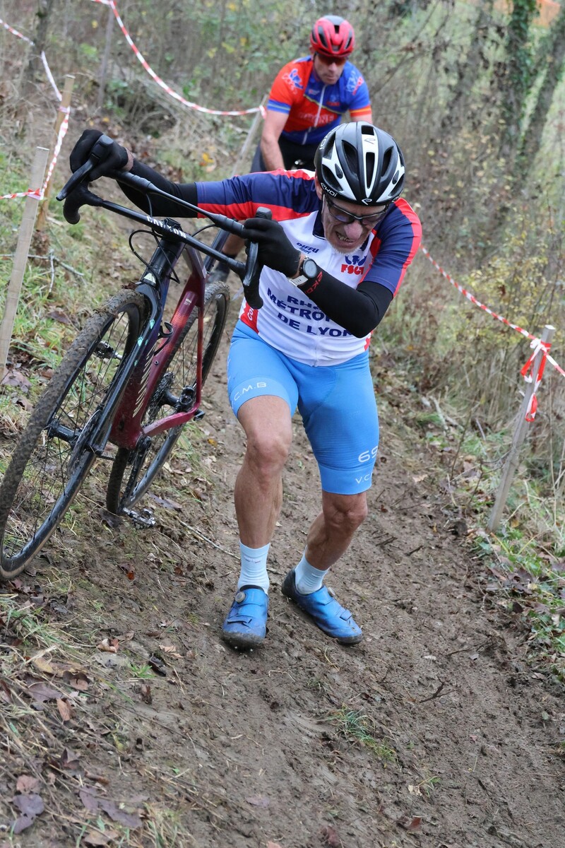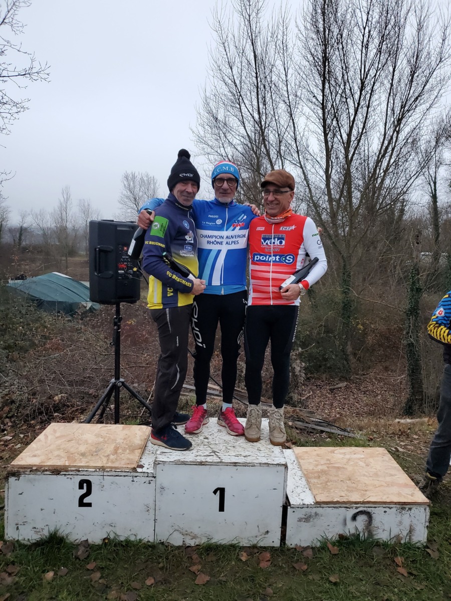 Serge Plasse prend son deuxième titre consécutif de champion Cyclo-Cross AURA catégorie super ancien et je termine difficilement ce circuit technique et physique. Bravo Serge c'est une excellente performance obtenue à 'issue d'une course maîtrisée.