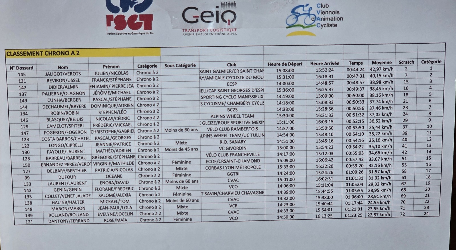 François et Jean-Claude ont réalisé le difficile circuit de Cour et Buis. François se classe 11ème du scratch individuel homme, J-C 43ème. Epreuve comptant pour le classement de la coupe des CLM FSGT 2025 ou nos coureurs occupent de belles places.