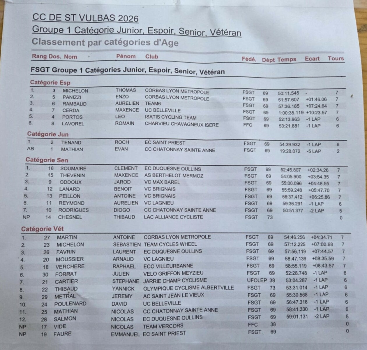 Deuxième épreuve du week-end pour Serge Plasse et victoire en "super anciens" bravo Sergio ! Dans la même course Ludovic Oddoux prend la 5ème place du scratch. Jarod Oddoux 3ème sur la course des seniors réalisée sous la pluie, belle reprise de la team Oddoux !