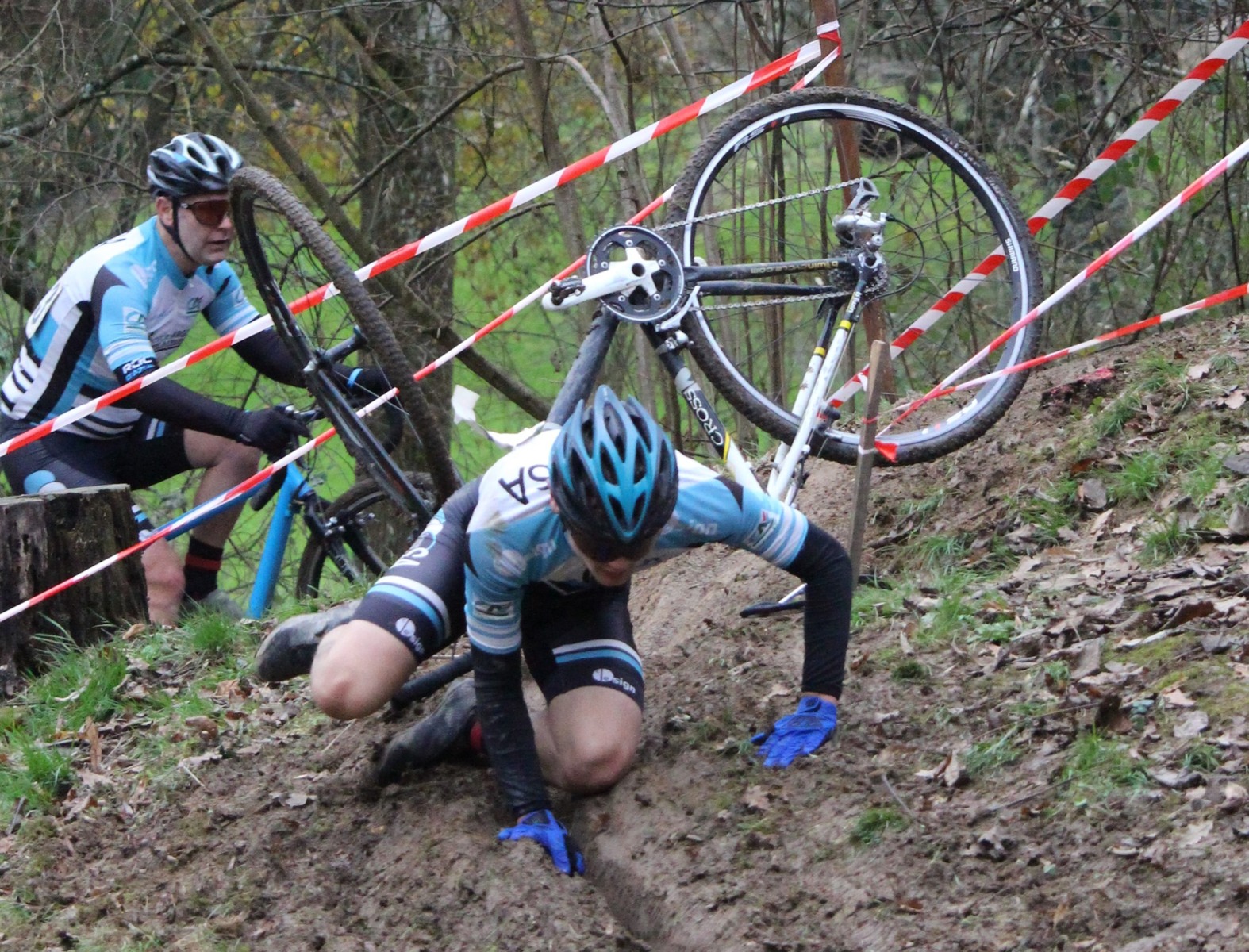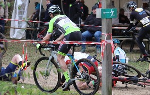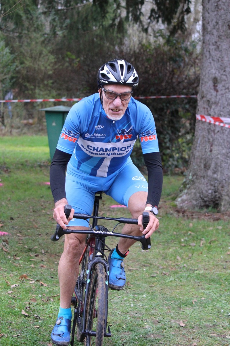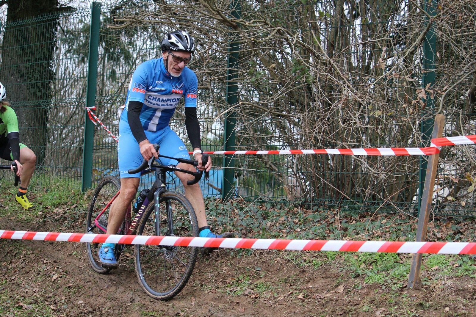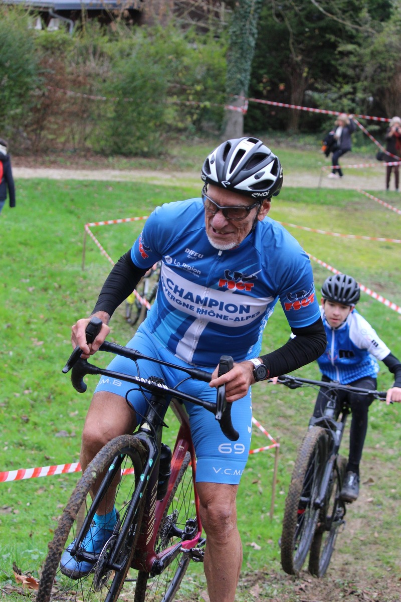 Serge Plasse en reprise prudente sur ce CX tracé dans le camping des oiseaux de Villars Les Dombes. Des virages serrés, des banderoles dans tous les sens pour évoluer autour des tentes du camping. Une météo agréable et un circuit mouillé et boueux par endroit. A l'arrivée Serge assure le podium et prend des points précieux pour le challenge des cyclocross, je termine avec deux chutes sans gravité.