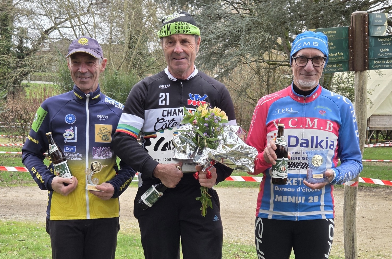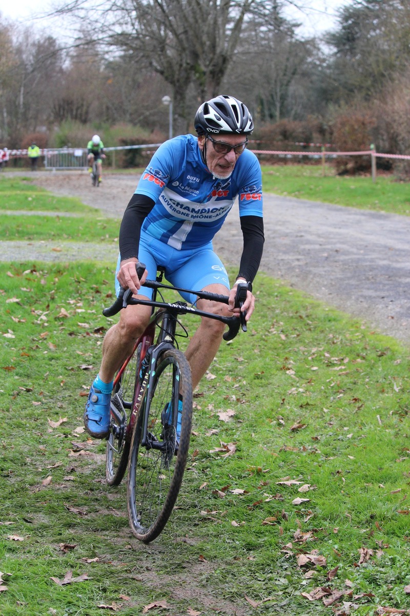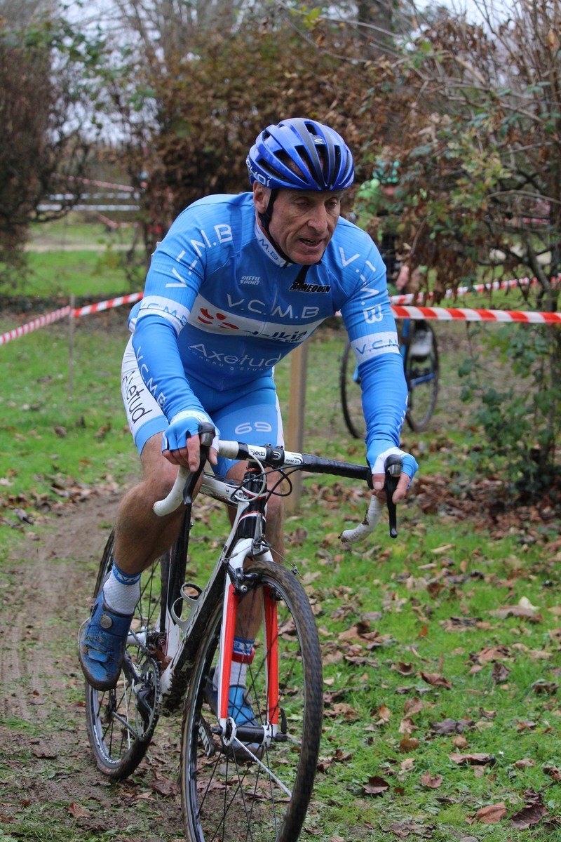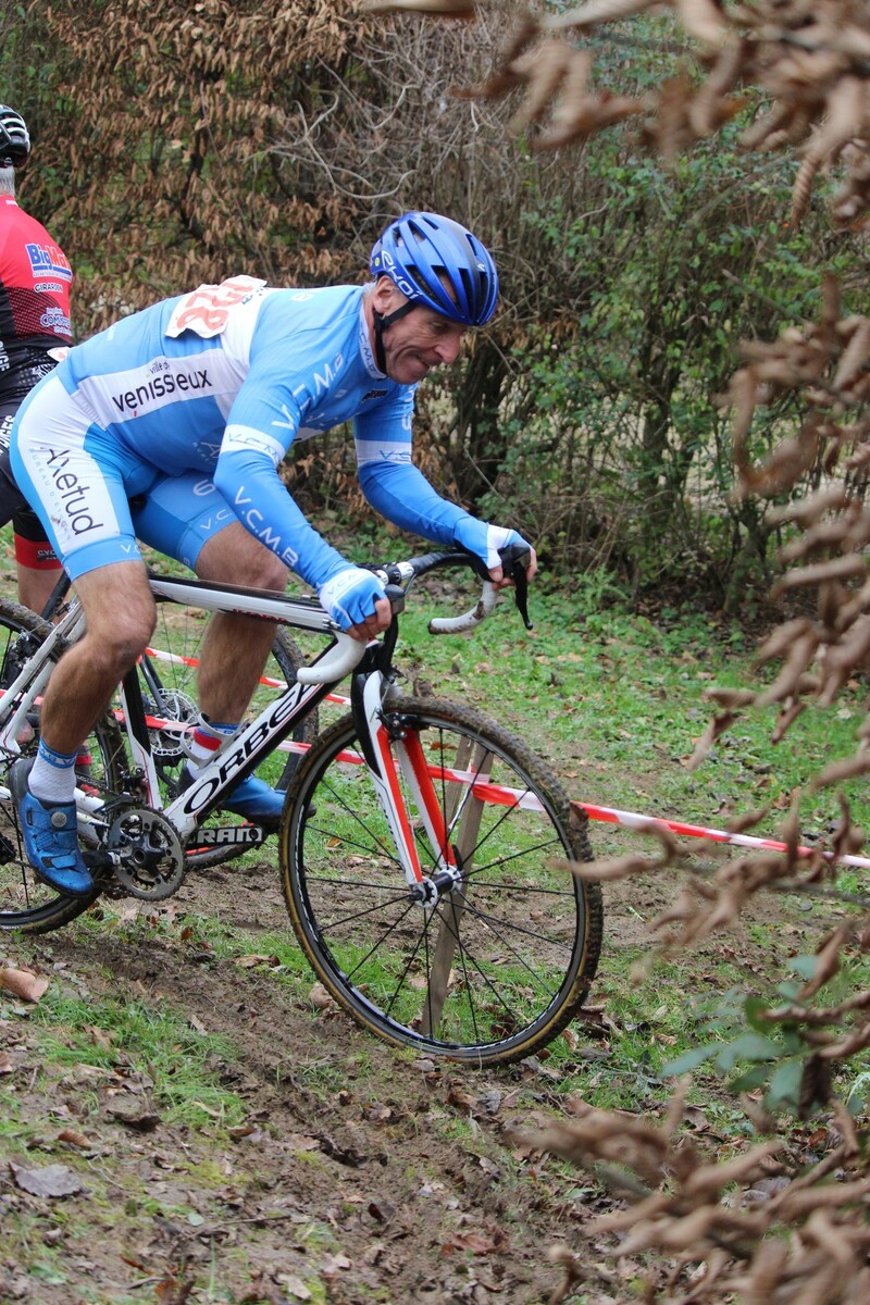 Serge Plasse en reprise prudente sur ce CX tracé dans le camping des oiseaux de Villars Les Dombes. Des virages serrés, des banderoles dans tous les sens pour évoluer autour des tentes du camping. Une météo agréable et un circuit mouillé et boueux par endroit. A l'arrivée Serge assure le podium et prend des points précieux pour le challenge des cyclocross, je termine avec deux chutes sans gravité.