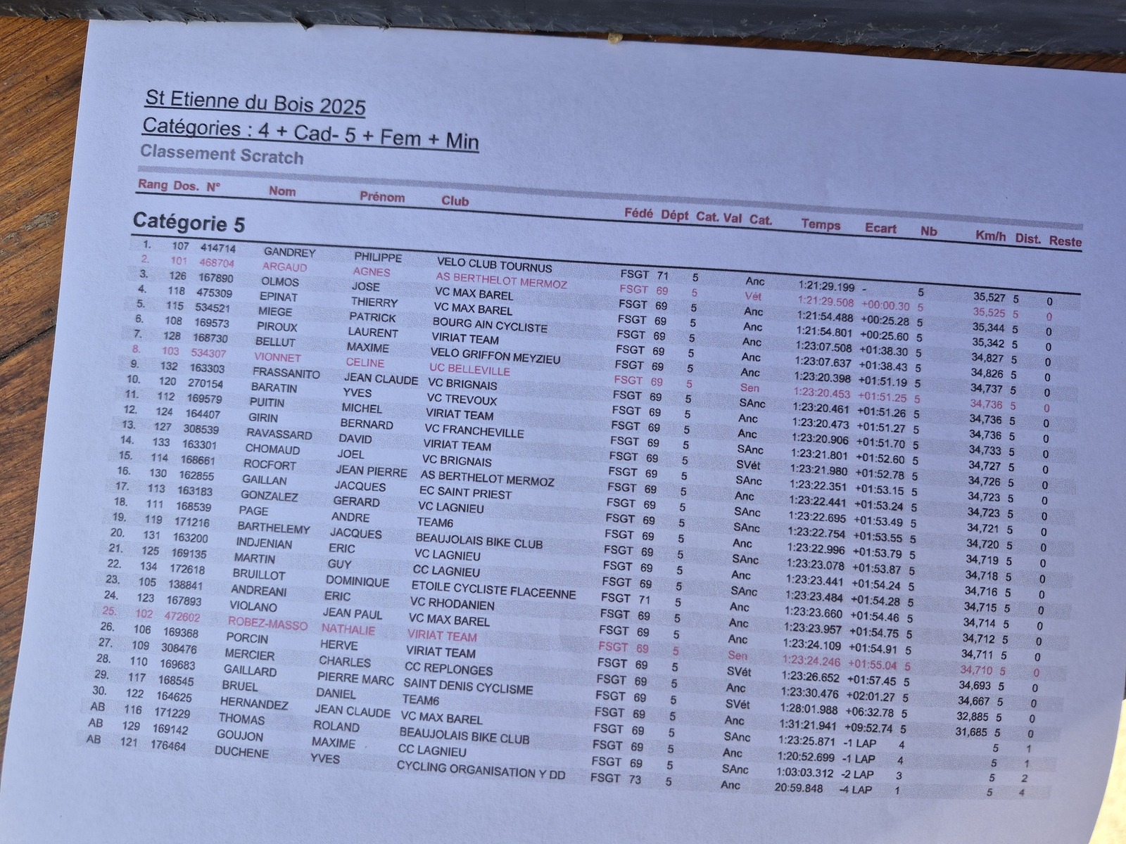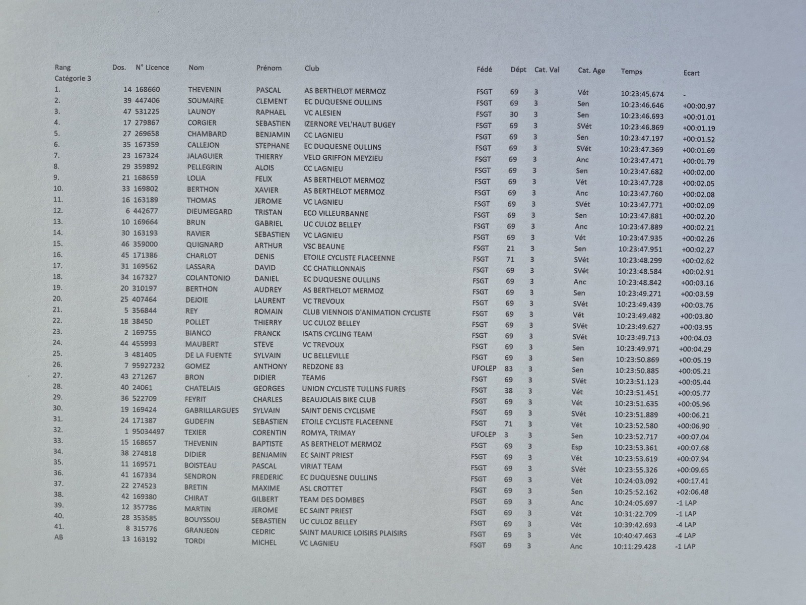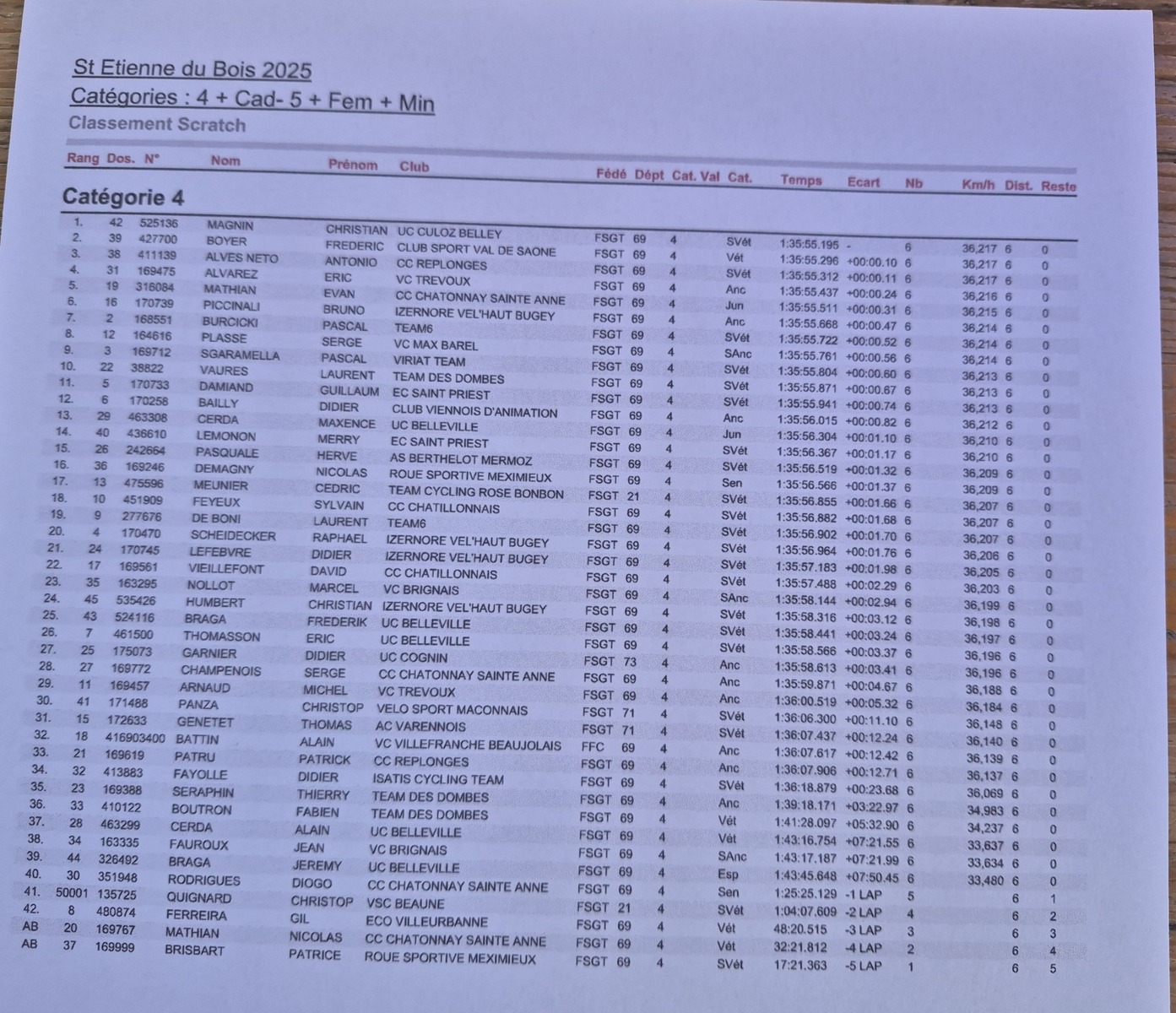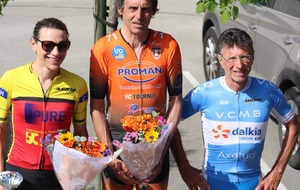 Thierry, Jean-Paul, Jean-Claude et José sur la course des 5ème catégorie avec Serge en 4 sur un nouveau circuit de 9 km 650. Une échappée de six coureurs avec José et Thierry se crée dans la courses des 5, Jean-Claude et Jean-Paul contrôlent le peloton et à l'arrivée une place de troisième au scratch pour José et quatrième pour Thierry. Serge seul coureur VCMB engagé en 4, confirme sa forme en terminant 8ème. Bravo à nos coureurs